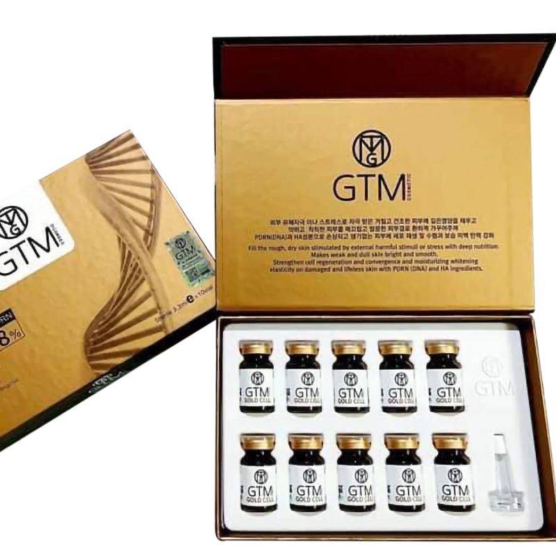 GTM GOLD CELL Stem Cell 8% with high salmon DNA content is produced by CMED with the Korean cosmetic brand GTM Cometic. The product is widely used in spa treatments such as skin tightening, whitening and rejuvenation.